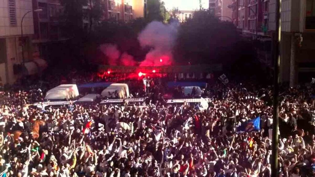 Este Madrid debe encender el fuego y conservarlo. Y soñar con el gol, que nunca antes fue tanto sueño, como la vida de Calderón. Este Madrid necesita ser libre, sentirse libre. Guardar el fuego, cuidarlo y sacarlo a pasear íntimamente por esos campos vacíos. Este Madrid no cuenta con sus elementos, pero al mismo tiempo sí, es extraño. Como si le faltara la argamasa para juntarlos y que funcionen juntos. Es un Madrid pobre. Como sopa, como gachas. Pillado en mitad de un viaje, alejado de su casa y de su destino.