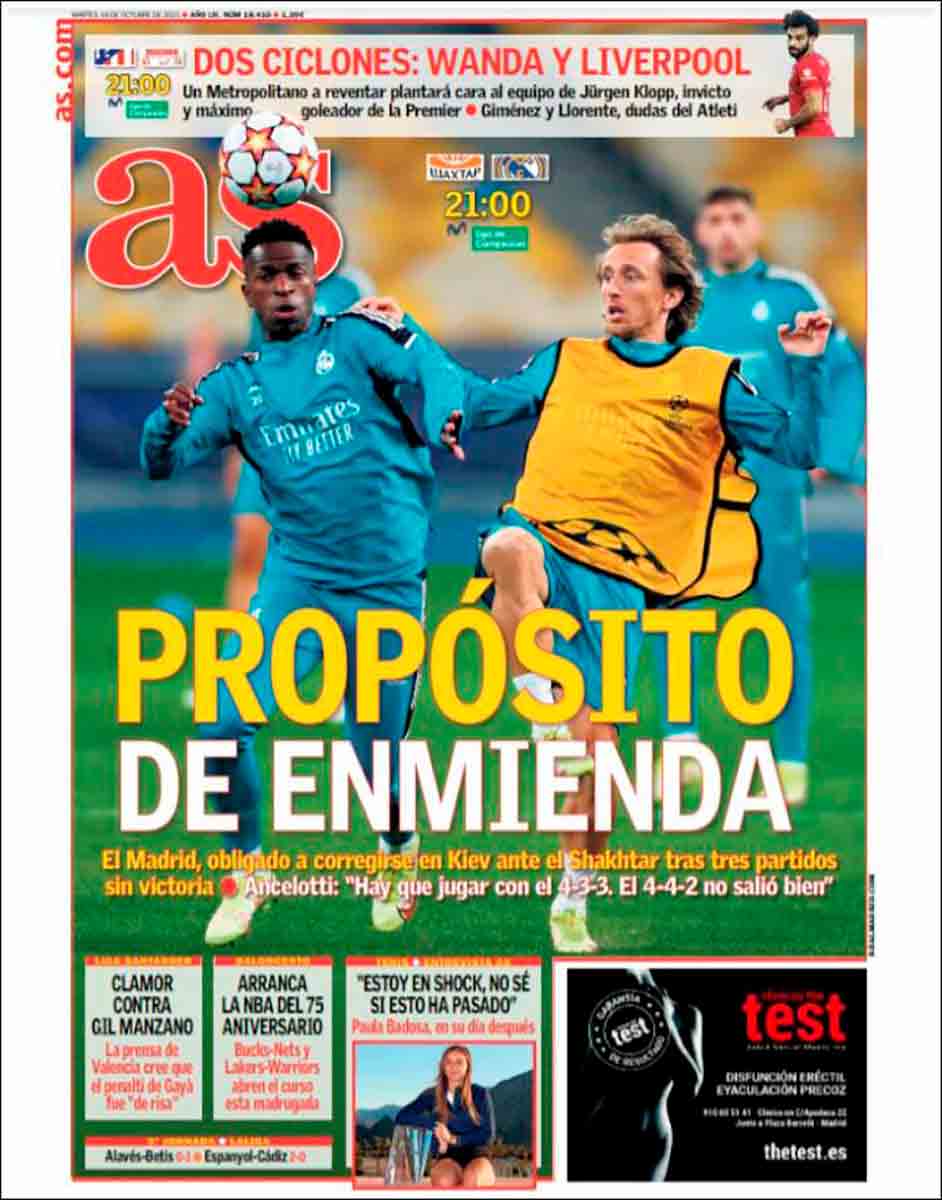 El sermón de As de hoy trata sobre el propósito de enmienda. Tras la confesión de Ancelotti en capilla periodística de que jugar con 4-4-2 salió mal, el técnico manifiesta su voluntad de no repetir los pecados del pasado y utilizar a partir de ahora un esquema 4-3-3. Contra el concepto de propósito de enmienda no tenemos nada, obviamente, más bien al contrario, pero afirmar de manera tajante que hay que jugar con 4-3-3 sabiendo lo cambiantes que son las circunstancias (lesiones, calendario, convocatorias de selecciones, pandemias, volcanes, etc.), parece poco prudente.