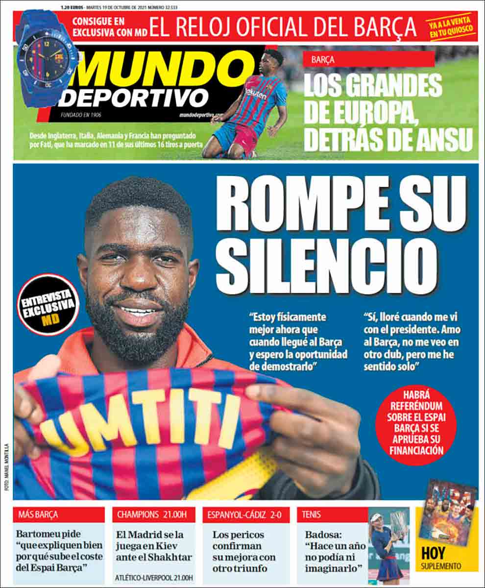 Perdón, craso error, no es M. A., es Umtiti, que rompe su silencio. La verdad es que no nos habíamos dado cuenta de que estaba callao, como la madrileña plaza, aunque en muchas ocasiones el silencio es uno de los bienes más preciados.