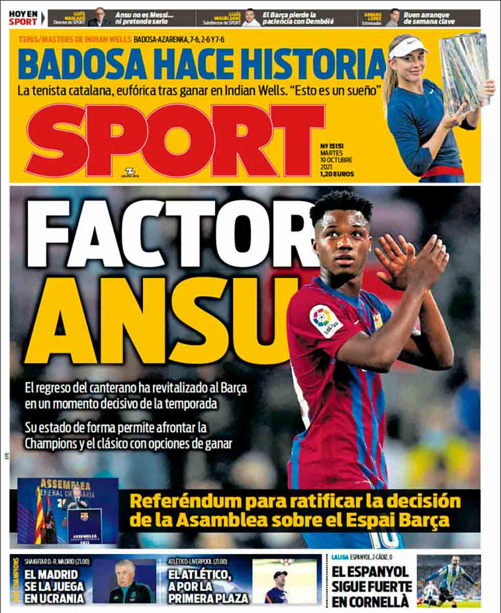 Esta es la portada Sport. Ya la habéis visto, de modo que proseguimos con el Portanálisis.