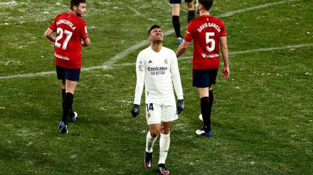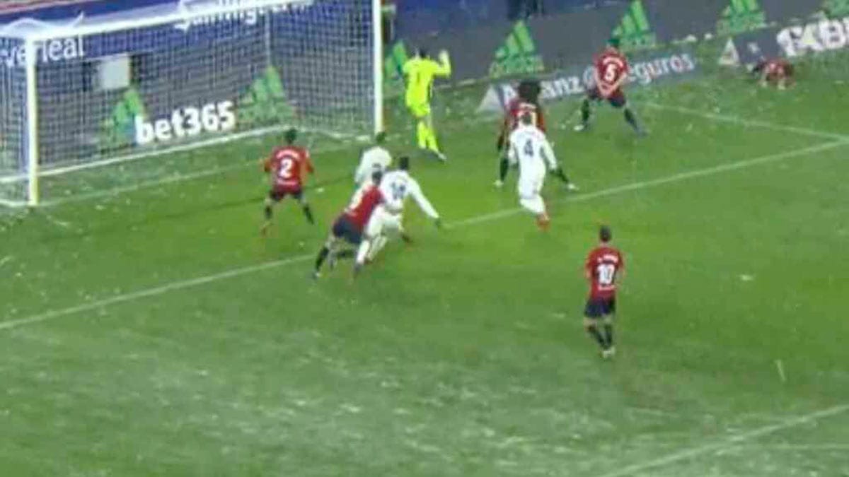 El Real Madrid tenía pensado viajar el mismo día del partido porque la predicción meteorológica era mucho más idónea que la noche del viernes. La Liga denegó esta opción. El club blanco, una vez aterrizado en la capital navarra, propuso disputar el partido a las 16:15 (recordemos que el Atlético-Athletic estaba aplazado en ese horario). Todavía no había nevado en Pamplona, pero La Liga no aceptó esta propuesta y el encuentro se disputó con las peores condiciones posibles. El campo estaba parcialmente helado.