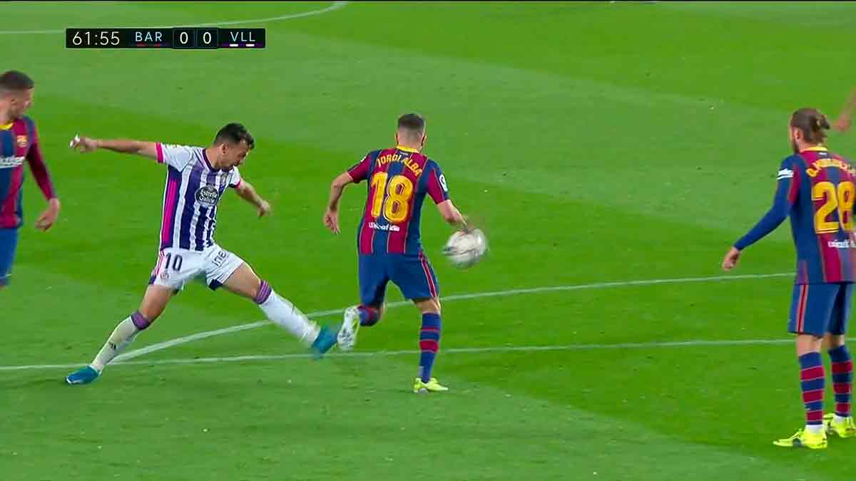 Vamos a ver, en la foto se ve claramente cómo Jordi Alba tiene la mano pegada al cuerpo, concretamente a la altura del hombro.