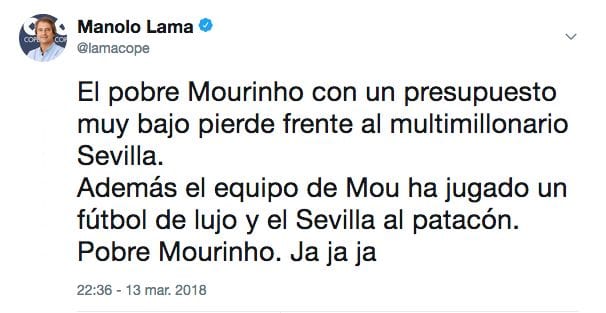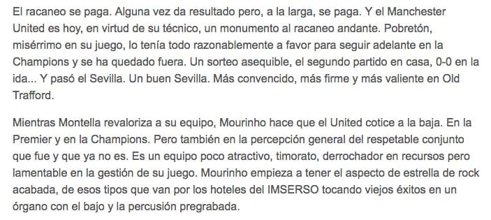 Yo no sé si Mou está acabado o no como entrenador. Pero sí sé que es mucho mejor persona que estos impresentables e intuyo que toda esta mierda que escriben sobre él se la trae bastante floja.