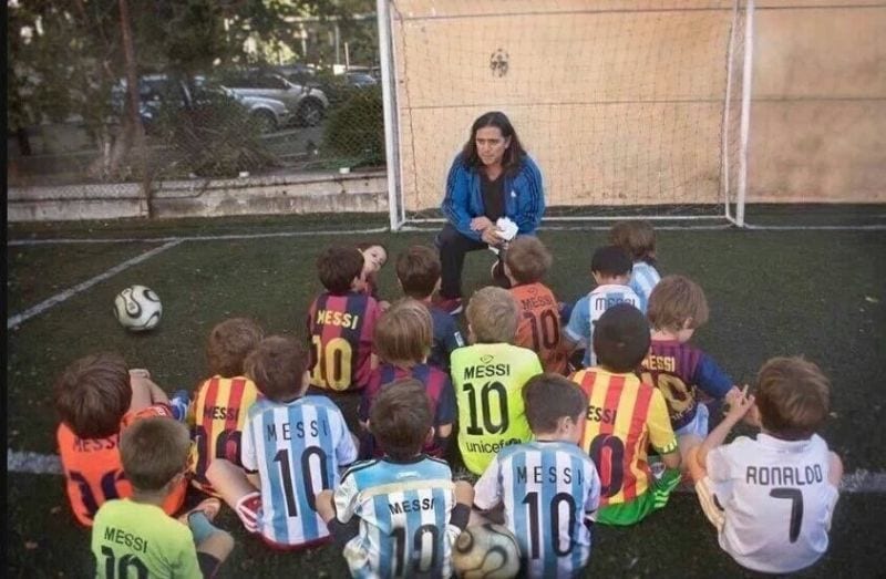 Hay diecisiete niños. Están sentados en el césped y atienden al maestro. Les habla de fútbol, cabe suponer. O quizá no. Es imposible saberlo. Hay dos balones en la fotografía. Dos balones y diecisiete niños. Es imposible hacer con ellos dos equipos, aunque tal vez haya más niños fuera de escena. Eso también es imposible saberlo. De los diecisiete, dieciséis visten la camiseta con el dorsal de Messi. Cinco son zamarras argentinas, y las otras, todas barcelonistas. De qué otro equipo podían ser, naturalmente, puesto que Messi sólo ha jugado en el Barça. No como Ronaldo, que estuvo en el Sporting, y luego en el Manchester, antes de hacerse madridista. Porque Cristiano se hizo, abrazó la palabra y la causa, convencido, de adulto, por elección propia, como se adscribe uno a las guerras que la vida le descubre merecedoras de luchar y vivir por ellas. Los niños de la foto tendrán entre ocho, nueve y diez años. Más o menos, la edad con la que Messi llegó a Barcelona con su familia.
