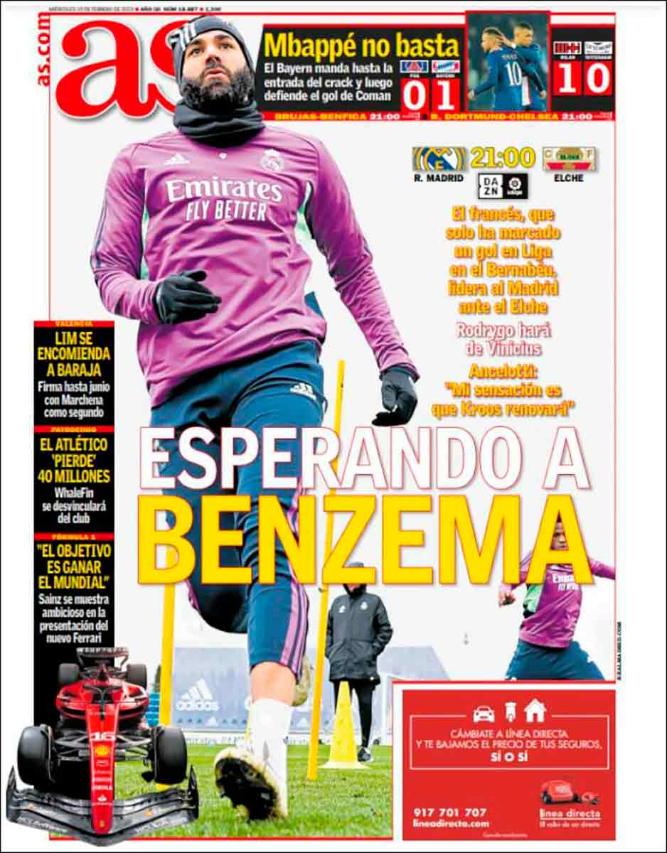 As nos indica quién sustituirá a Vini. “Rodrygo hará de Vinicius”, nos informa, como una subtrama al argumento principal, que es Benzema, a quien al parecer estamos esperando. Waiting for the man, que cantaba la Velvet, aunque lo cierto es que no sabemos por qué As se empeña en esperar a alguien que ya ha llegado.