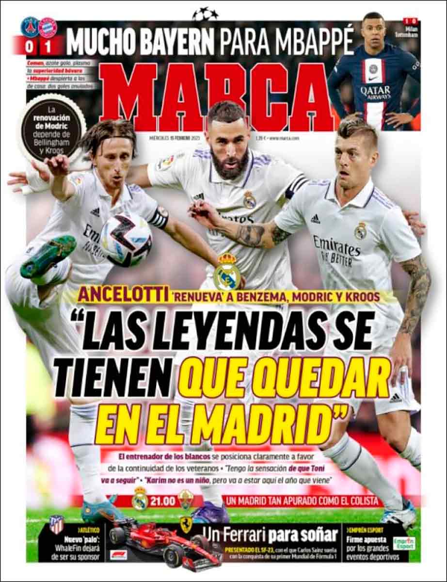 Marca trae en portada al propio Karim más Modric y más Kroos, y cita a Ancelotti reclamando que las leyendas se retiren en el Madrid. A nosotros también nos gustaría que los tres colgaran las botas en Valdebebas (Kroos ya ha anunciado que así lo hará, solo falta saber cuándo), aunque somos menos románticos que la media. Hasta D. Alfredo tuvo que retirarse en otras latitudes, renuente como estaba a aceptar su propio declive. Veamos qué pasa, sin apasionamientos. Existen otros lugares donde pueden ganarse sumas desatinadas de dinero apetecibles para cerrar una carrera gloriosa, y si tal cosa les tienta no será el Madrid quien les retenga. Son glorias eternas, hagan lo que hagan a partir de ahora.