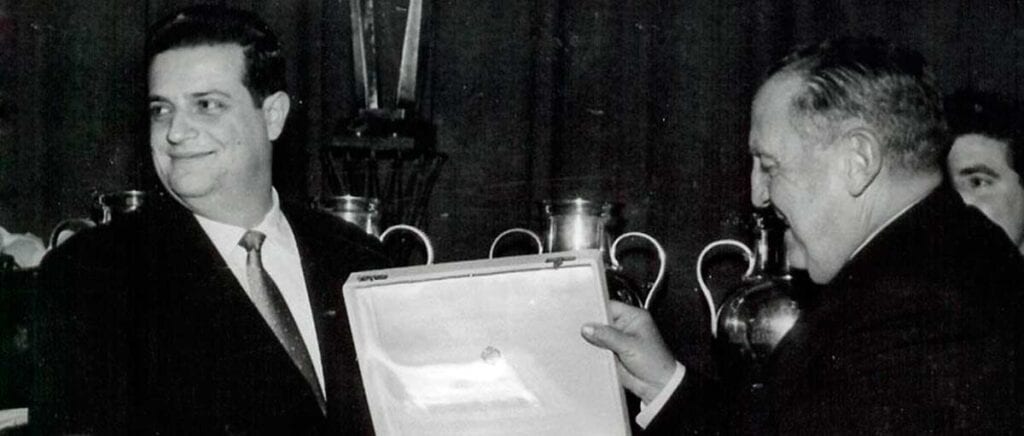 Puedo dar fe que esta forma de comportamiento era admirada y respetada. No solo en las altas esferas,-la habilidad de Saporta y el prestigio del Madrid consiguieron, por ejemplo, que nuestro equipo de baloncesto fuera la primera expedición que jugara en el hermético Moscú de la Unión Soviética-, sino que unas simples insignias eran capaces de aligerar pesados trámites burocráticos en los países del telón de acero. El Madrid estaba revestido de una reputación de la que no gozaba ningún otro club en el mundo. Y por eso, ya entrados los años 60, cuando España era un país inmerso en un régimen autoritario al que se miraba con recelo, muy lejos todavía de la Unión Europea, la reputación de nuestro club era extraordinaria, hasta el punto de que se convirtió en la imagen de la marca holandesa Philips en el continente, unas de las empresas punteras de su sector.
