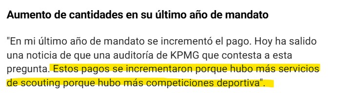 Fue un circunloquio en el que Laporta trató de vender su mercancía averiada (justificación de los pagos) llegando incluso a mentar a Franco en el turno de preguntas y respuestas. No dejó de ser la carta desesperada usada habitualmente desde Barcelona para justificar lo injustificable que además el Real se encargó de destrozar con un vídeo pocos días después. Volveré sobre el club y sus abogados más adelante pero que Laporta usase esta carta fue una demostración de lo desesperada que era y es la situación.