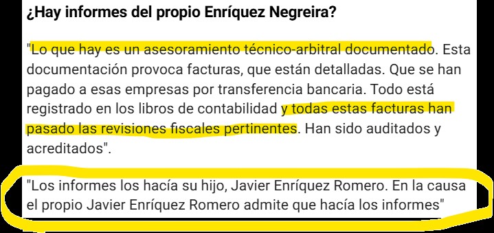 Finalizo volviendo al Real y a sus abogados. Son tantas las incongruencias, mentiras y contradicciones en este caso (no caben todas en este artículo y mira que me es largo) que los abogados deben ir a por todas para conseguir que se condene por corrupción deportiva al Barça. El momento de demostrar que se pagaba a Enríquez Negreira como lobista arbitral para conseguir mejores arbitrajes, para conseguir un arbitraje neutral y culémente favorable. Ya sabemos por declaraciones de antiguos directivos que estos pagos fueron para hacer lobby arbitral.