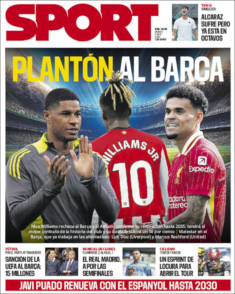—Niño, no me pongas solo el chasco del Williams, cojons. Véndeme en portada algo que dé esperanza también, para compensar, ya sabes. Ponerme un Luis Díaz ahí. Ponme un Rashford. Que Jan está que trina y ya solo falta que nos cierre el grifo.