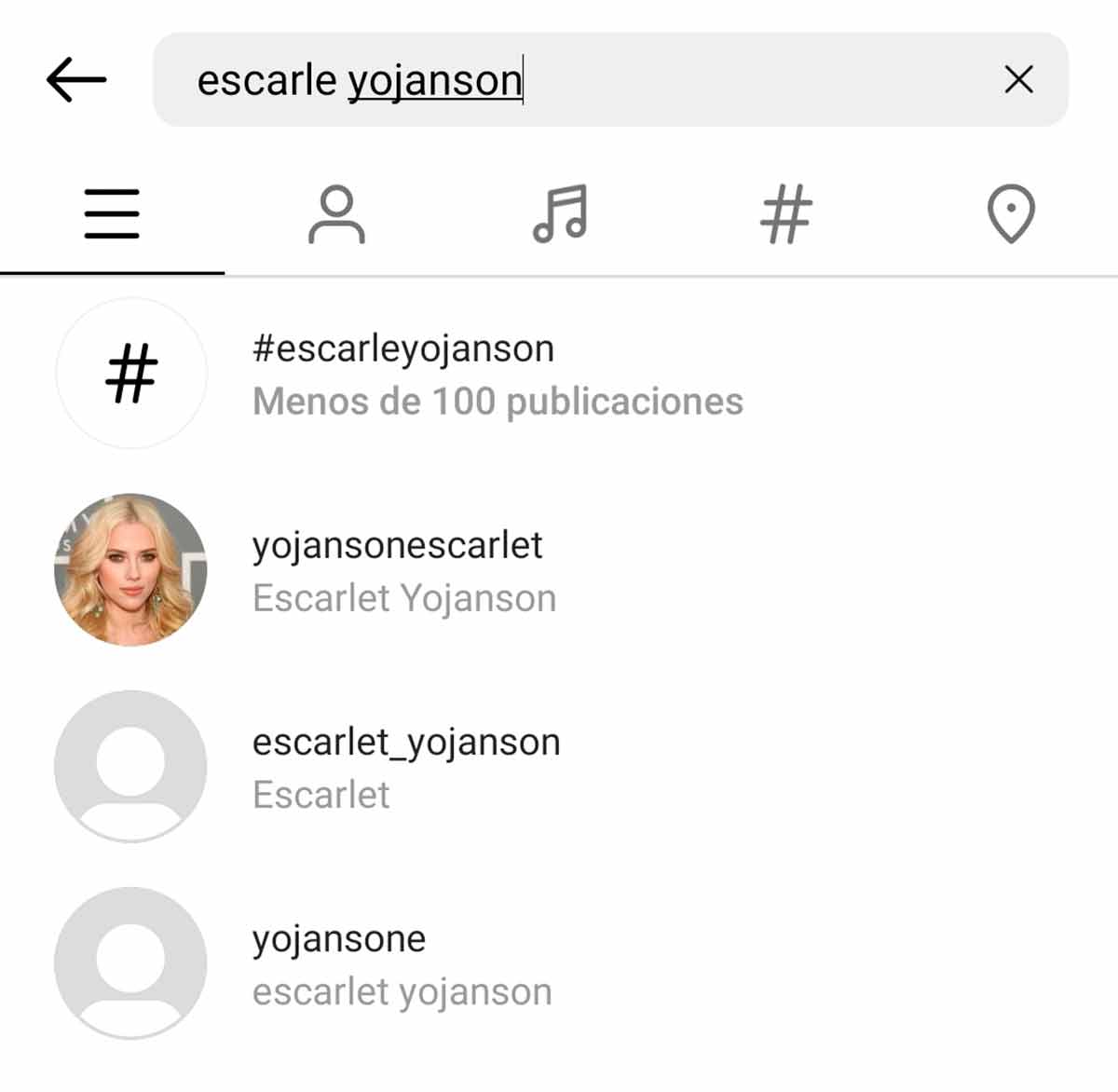 Casi todas las cuentas que sigue en esa red social son de flamenkitas, canis o chicas que ha conocido en aparcamientos de discotecas. Está aburrido de ver siempre lo mismo y decide adentrarse en otros mundos. Se acuerda de una actriz que aparecía en una película de esas de moñecos o de tebeos. ¿Cómo se llamaba…? ¡Lo recuerda! Toca la lupa de IG y busca: “escarle yojanson”.
