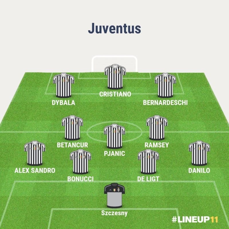 - Mi alineación ideal: Szczesny. Danilo. De Ligt. Bonucci. Alex Sandro. Pjanic. Bentancur. Ramsey. Dybala. Bernardeschi. Cristiano.
