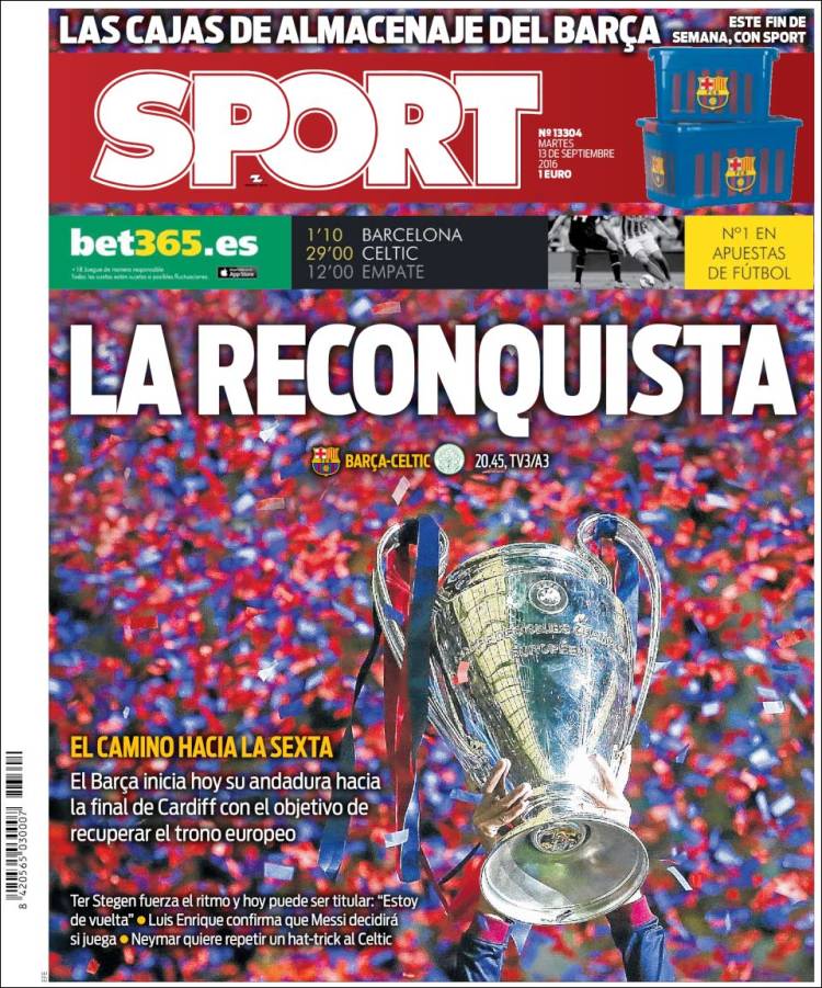 Speaking of which... Aquí tenéis también las sosainas portadas de la prensa catalana, por donde aún nadie parece haberse dado cuenta de que el Barça no superará su actual crisis hasta que Suárez no se tiña también, como Messi y Neymar, de amarillo chillón. Ayer lo explicábamos, pero qué le vamos a hacer si señores como Mascaró prefieren, en lugar de hacernos caso, dedicarse a insultar ("es tonto") a Cristiano en su cada día más bochornoso medio.
