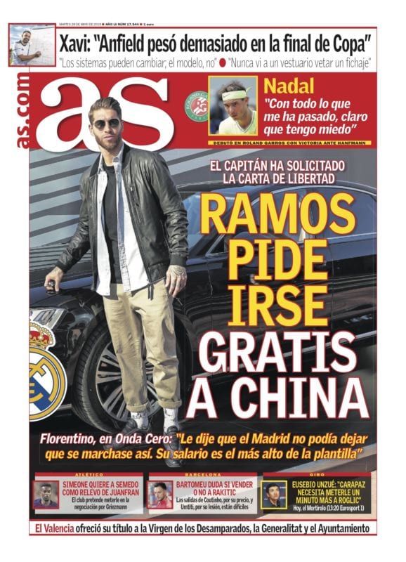 No me importa que se vaya Ramos, es más, me alegro. Pero de ahí a dejarlo marchar gratis hay un trecho.