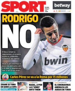 Tal vez el Valencia pidió 1.500 millones de euros por Rodrigo. Y en ese caso, el Barça hizo bien en decir un NO bien grande como el de Sport y romper las negociaciones.