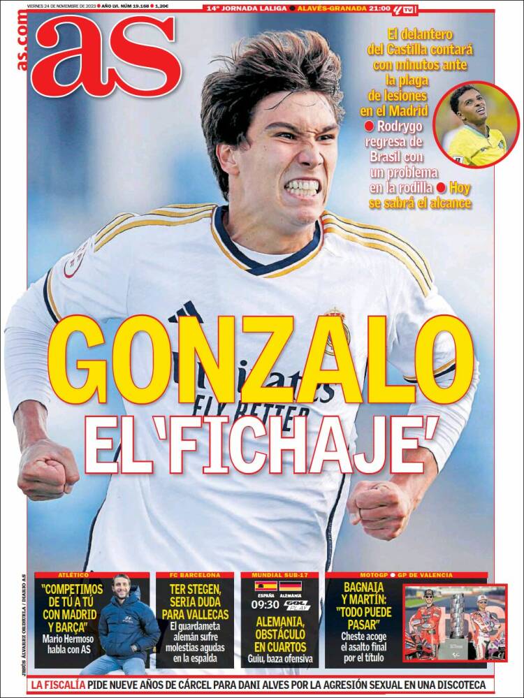 No. No lo quiera Dios. As también quiere que vayamos poniéndonos en la peor tesitura. Avanza a Gonzalo, el prometedor goleador del filial, como “el fichaje”, y desde el máximo cariño al chico nos tiemblan las carnes al imaginar que la razón para este ascenso de categoría tenga que ver con una baja de largo alcance de Rodrygo, a cuya rodilla se alude lóbregamente en el ángulo superior derecho.
