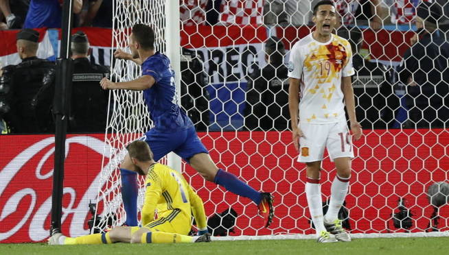 El combinado capitaneado por Ramos saltó bien al césped de Burdeos. La Roja comenzó a mimar el balón y a impregnarle ese aire de juego directo que tanto se echaba de menos en citas anteriores y que parecía haber vuelto a mandar sobre el campo. Ante la paulatina desaparición de Iniesta, el mejor en los dos encuentros de la fase, era Silva el encargado esta vez de tomar las riendas del juego. Así, en el minuto siete, el canario mandaba un pase maravilloso a los pies de Cesc que levantaba el cuero para que Morata la empujase a las mallas croatas y se erigiese, de momento y empatado con su nuevo compañero de equipo, Gareth Bale, en el pichichi del torneo. Luego que si no hay proyecto y tal.