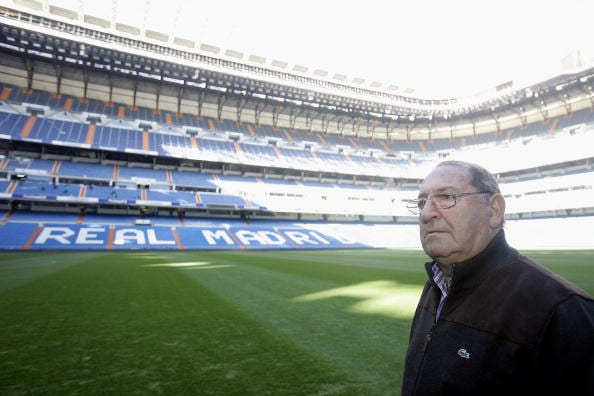 Pachín llegó al Bernabéu con veinte años, como Gento, a un equipo de ensueño, uno de verdad, escrito en español. Y sus ojos son de veinteañero y no de octogenario cuando cuenta lo que fue llegar allí donde jugaban Di Stéfano y Puskas: la entrada de Alejandro en Babilonia. Una vez Fusté, del Barcelona, le dijo que no había ganado ninguna Liga. Pachín se lo dijo a Paco ("Oye, que dice Fusté que no ha ganado una Liga...") y Gento le respondía en un polinesio castizo santanderino (ese es el idioma que utiliza) que cómo no iba a ser eso si eran ellos los que lo habían ganado todo.