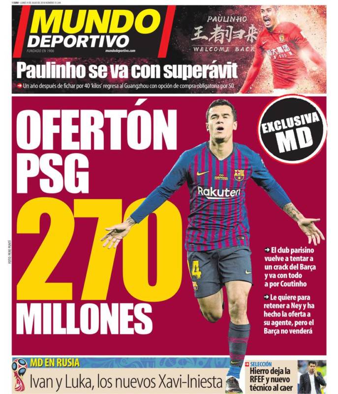 En Barcelona, mientras tanto, ha llegado el Carnaval. Celebran la marcha de Paulinho, nos cuentan que Guardiola ganará el Mundial de Rusia y presumen de que el PSG quiere pagar 270 millones de euros por Coutinho, pero que el Barça no los va a aceptar. Bravo.