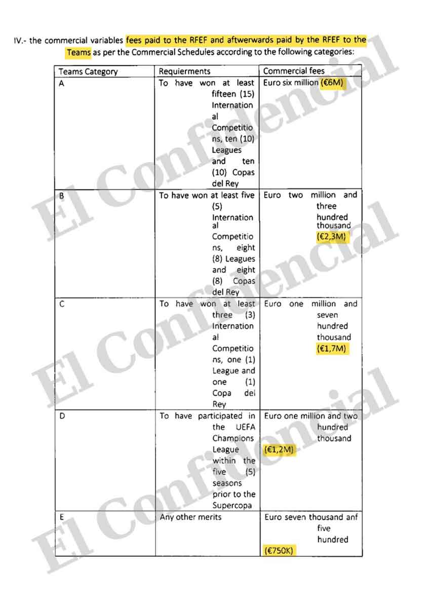 De forma adyacente, este contrato ha permitido que se fundamenten todo tipo de suspicacias al unir el mayor éxito (máximo ingreso) con la clasificación de Real y Barça. Sin uno de ellos o los dos, Arabia Saudí paga menos. ¿En qué cabeza cabe firmar un contrato cuyos máximos ingresos dependen de la clasificación de dos determinados clubes cuando eres el máximo responsable de los jueces (árbitros) tanto de la Supercopa como de los torneos por los que se puede conseguir la clasificación para esta, Liga y Copa del Rey? Normal que fuera un contrato confidencial... es un disparo cuasi mortal a la integridad de la competición.