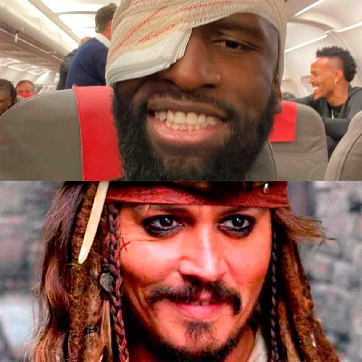 Desde que llegó al Madrid —confieso que tengo la mala costumbre de no fijarme mucho en los futbolistas de otros equipos— Antonio Rüdiger me pareció una suerte de Jack Sparrow que actúa según le dictan los impulsos eléctricos de un cerebro que los demás no llegamos a comprender del todo, pero que sin embargo guía a buen puerto al defensa alemán. Y, tras la publicación de la fotografía en la que posa en el avión a su regreso de Varsovia con la cabeza vendada y el ojo parcheado, el parecido con el pirata del Caribe se hizo más patente.