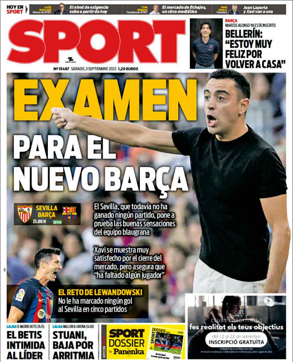 No es el caso del Barcelona, que ya sabemos que solo es bona si la palanca sona. Poco que destacar en este sentido de un par de portadas tan insulsas como Bellerín vestido con el chándal del equipo. “Examen para la Académica Palanca” dice Sport, “Plantillón” titular del diario de Godó, grande de España; el coco se han dejado, vaya.
