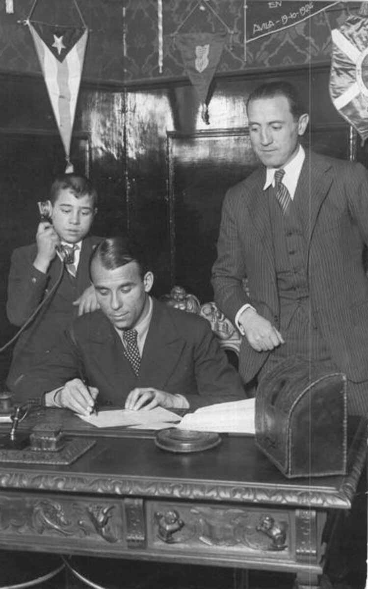 La cosa fue así. El 1 de enero de 1933 el Madrid visitaba Les Corts en la sexta jornada de Liga. Unos días antes, el 28 de diciembre, Samitier había recibido la comunicación por parte del club de que prescindiría de sus servicios. De indiscutible entre 1919 y 1932 a desdeñado. Demasiada injusticia para un mito. Entonces Bernabéu, ladino como pocos, aprovechó para hablar con él tras el partido y, sin recurrir a servilletas ni remiendos, le preguntó directamente si le gustaría jugar en el Madrid. La respuesta fue clara y las consecuencias inmediatas: el 7 de enero se produjo la firma del jugador en las oficinas del club blanco ante el estupor de la afición blaugrana y el regusto de la madrileña. 7.000 pesetas como prima de fichaje y 15.000 de sueldo anual pusieron las matemáticas al acuerdo.
