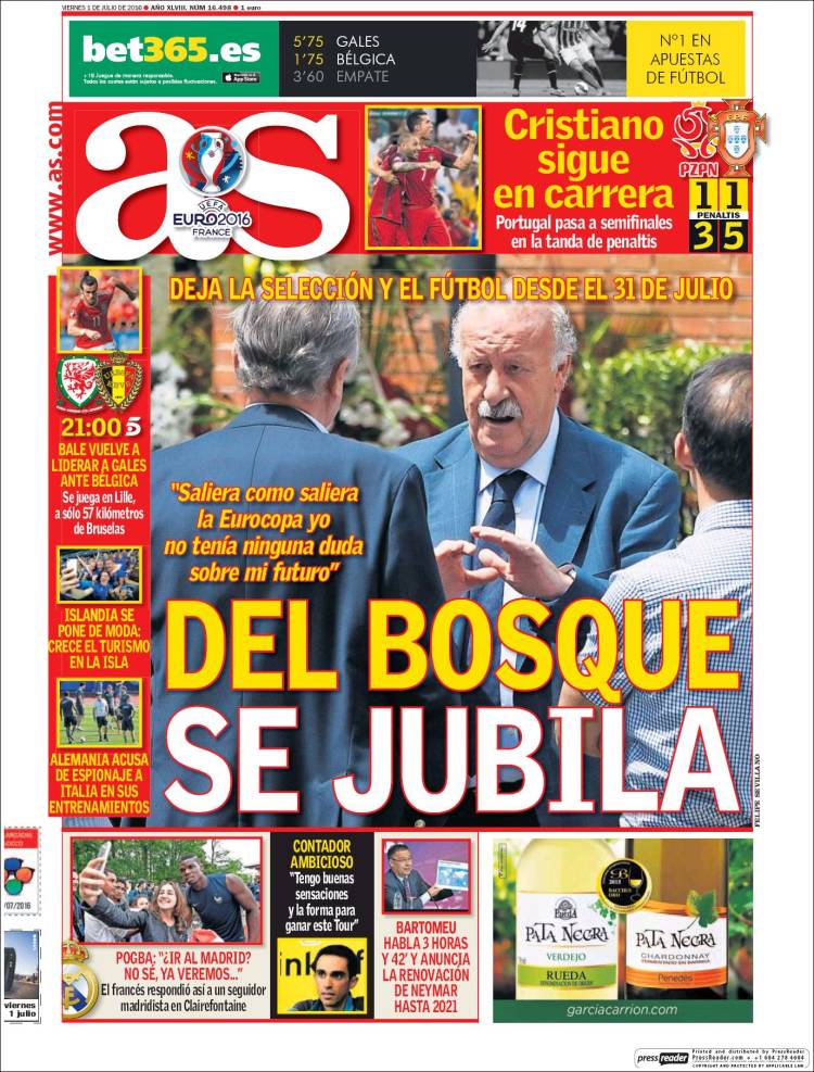 Algo así nos inspira el revanchismo verbal que estila hoy la primera plana de Ouija Today. No por la noticia en sí, que la da hasta la Gaceta de Bollullos del Condado, sino por el verbo escogido por los muchachos de Freddy para titular la salida de Vicente Del Bosque de la selección. De todos los verbos a escoger en el vasto tesoro lingüístico del castellano, los académicos de la Ouija han apostado por utilizar el verbo “jubilar” en lugar de “retirar”, “abandonar” o “dejar”; por citar sólo algunas variables.