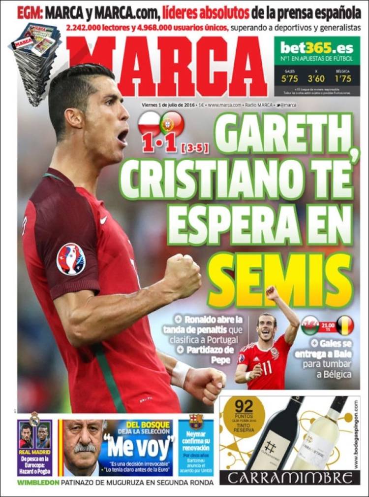 Mundo Deportivo podrá colocar en portada a Quaresma, de quien todos recordamos su excelso y fulgurante paso por Can Barça, para despistar a sus parroquianos; pero la Portugal de Pepe y CR7 seguirá estando en semifinales y Messi sollozando en el MetLife Stadium, de East Rutherford, New Jersey. Pena, penita, pena.