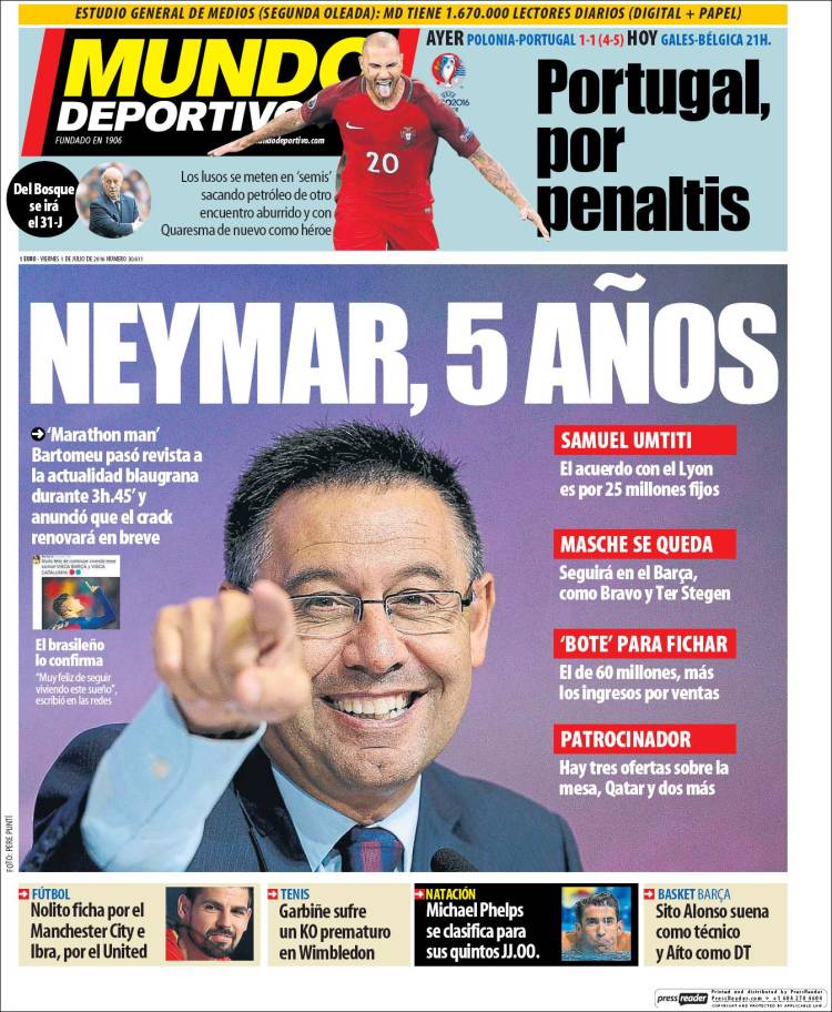 Con Neymar renovat y pocas cabezas nucleares que orientar hacia la Casa Blanca, el más predilectísimo de sus objetivos, la prensa del rinconcito dirige sus dardos a nuestros ibéricos vecinos por la sencilla razón de que allí juega nuestra estrella que, además, sí sabe meter los penaltis en los momentos decisivos frente a otros plañideros y barbudos ejemplos albicelestes.
