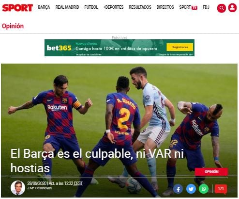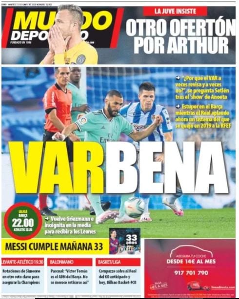 Entre otras muchas razones, pero sobre todo como respuesta a la mezquindad moral cataculé, la victoria del Madrid en el campeonato resulta higienizante, desinfectante, profiláctica si me apuran. Y si seguimos con las segundas partes y las mezquindades, tampoco está de más recordar que esta ha sido la segunda temporada del VAR, y si bien el tramo pre-parón nos recordó al VAR del gusto culé del “Rourarato”, es justo reconocer que nos ha sorprendido gratamente el VAR post-parón, un VAR que al menos no ha perjudicado a los nuestros. También es buen momento para recordar estas sonrojantes portadas: