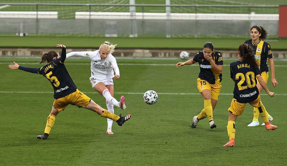 En esta ocasión, el Real Madrid desplegó su solidez durante los noventa minutos de juego y nunca se vio inquietado por un rival que suma ya cinco derrotas consecutivas. Únicamente la chispa inicial de las visitantes inquietó a las de David Aznar, que tardaron un cuarto de hora en imprimir el ritmo correcto al choque. Sin Maite Oroz al timón, las blancas tiraron de brío y velocidad para desarbolar a las blanquiazules.