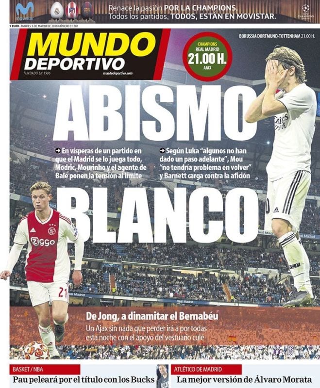 "Imparable crisis blanca", narra 'Sport'. Casi igual de dramático suena 'Mundo Deportivo' y su "abismo blanco". Parecen títulos de películas de sábado por la tarde. Están deseando que caiga el Real Madrid porque no quieren cruzárselo en cuartos o semifinales. No vaya a ser que...