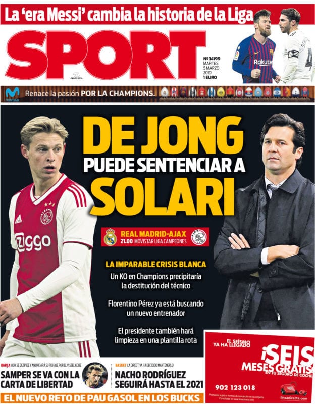 La prensa cataculé fantasea con la posibilidad de ver al Real Madrid fuera de Europa en octavos de final. Animan incluso a De Jong, ese jugador por el que han pagado una cantidad importante de dinero para que Aleñá siga teniendo los minutos de la basura.