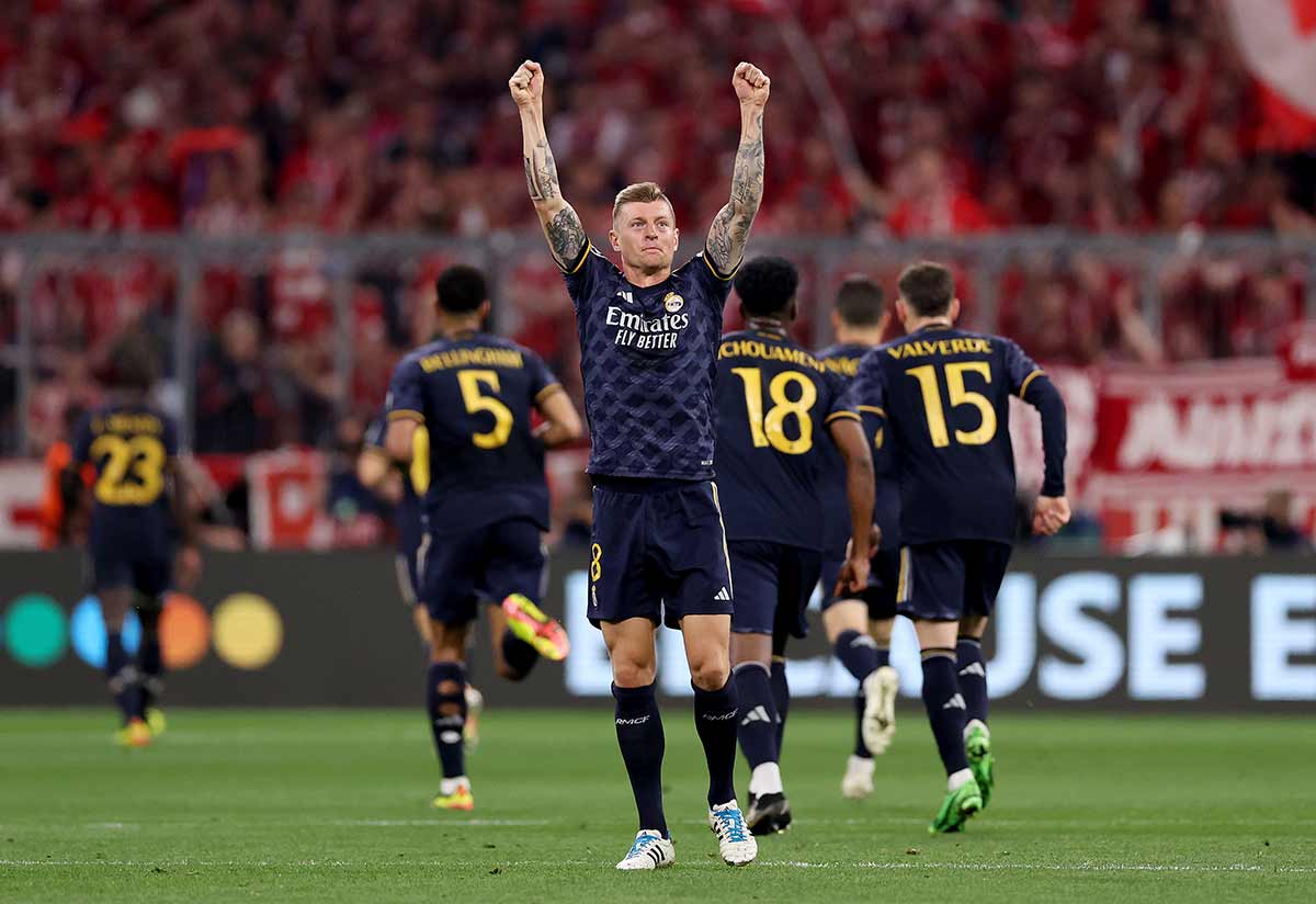 El alemán, con una comprensión del juego superior, vio el tablero de ajedrez desde la cima de un volcán, predijo los movimientos propios y de los rivales, y señaló al brasileño hacia dónde tenía que ir. Allí le colocó el balón en un hueco que solo vieron ambos, para que senhor Vinícius definiese a un toque frente a Neuer. No le descentró ni siquiera la estrafalaria indumentaria del excelente meta germano.