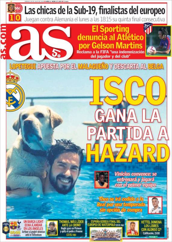 Y la cosa no queda ahí, porque además el As ha sido testigo de que Lopetegui estuvo presente en dicha partida y que apostó por Isco, excluyendo de una posible victoria a Hazard, que además parece ser belga, según la información del As en su portada...