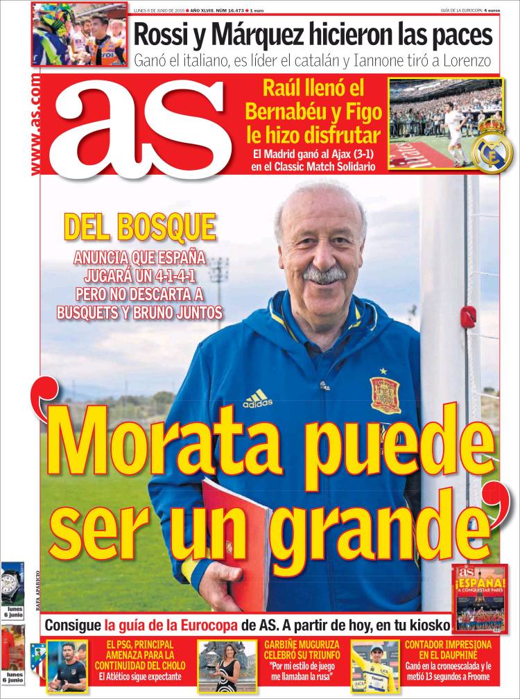 As personifica el asunto del pasaporte en la figura de De Bosque y hace muy requetebién en tanto en cuanto el sentimiento a través del cual uno se toma muy en serio la necesidad de vengar los camiones de los franceses (o el sándwich de pepinillo de los ingleses) a través de una victoria futbolera es indudablemente un sentimiento con bigote. Extendernos en ello nos produce algún rubor por la evidencia de la aseveración. Dice el mostacho por excelencia de la vida patria que Morata puede ser un grande y estamos de acuerdo. No nos importaría que Morata volviese al Madrid pero no por ser español ni canterano, sino por ser un estupendo jugador. El corazón tiene razones que la razón no entiende, y el corazón galernauta carece de accidentes pilosos sobre el belfo.
