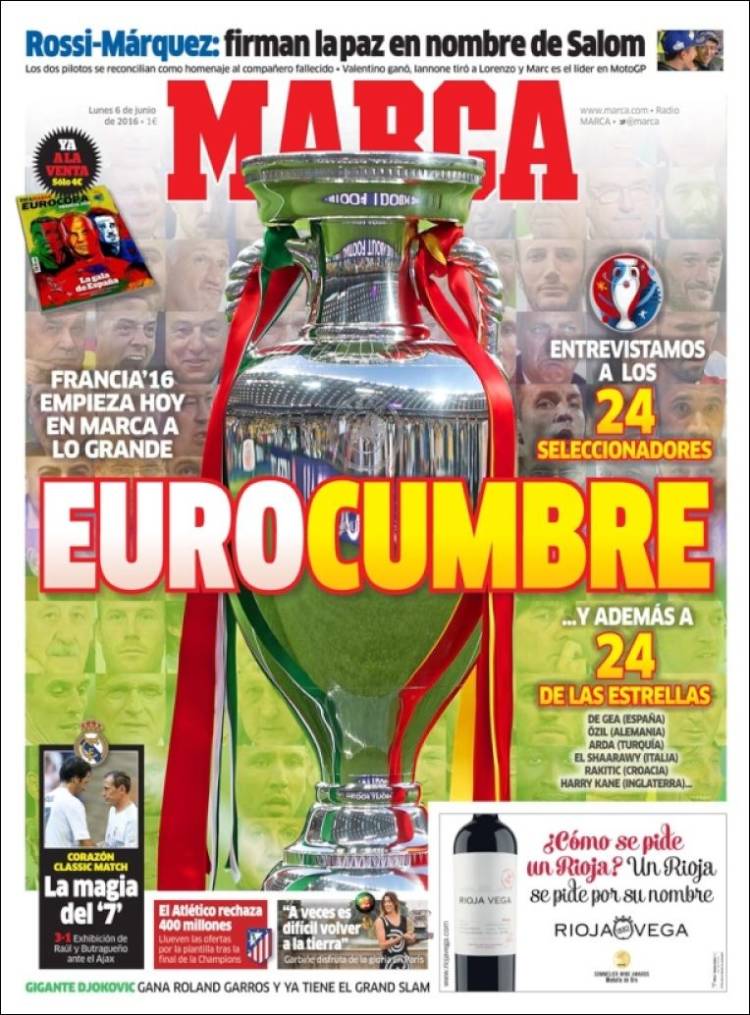 Ahí lo tenéis. Ni rastro ya de la Undécima, aquella lejana gesta, en la primera plana del periódico más leído de España. La Undécima es aire y va al aire, como decía Bécquer en cita recurrente para La Galerna. La Undécima son las estelas en la mar de Machado, el Dust in the wind de Kansas, el agujero en la pared en que Sartre cifraba toda divinidad. Marca, periódico de todos los españoles, aun de aquellos que no quieran que lo sea, ya está en la onda eurocopera y por qué no, decimos nosotros. Por qué no cuando hay gente para quien el máximo afán futbolero viene dictado por el pasaporte. Por qué no cuando todavía hay quien traslada al terreno de juego piques (sin tilde, aunque también) de chauvinismo añejo, que si como en España en ningún sitio, que si los franceses nos volcaban los camiones en la frontera, que si los ingleses nos daban un sándwich de pepinillo para comer cuando estudiábamos en Hastings. En La Galerna, sépase ya, pensamos cubrir la Eurocopa a nuestra manera que es la de Sinatra, es decir, la manera madridista. Lo haremos someramente, pues aún nos queda mucho, pero que mucho decir sobre la Undécima.