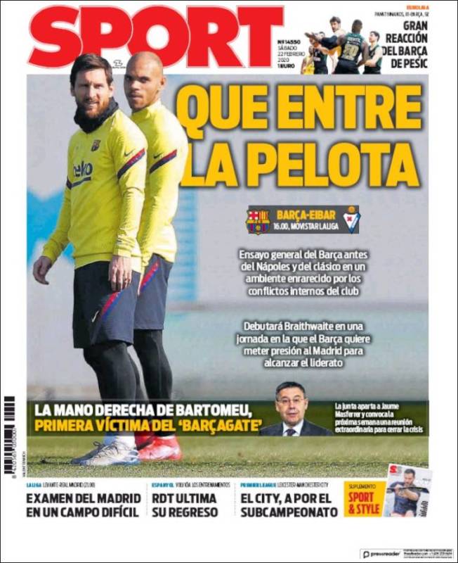 Os dejamos las portadas de la prensa cataculé porque querréis verlas. Solo dos palabras sobre ellas: Aguante, Bartomeu.