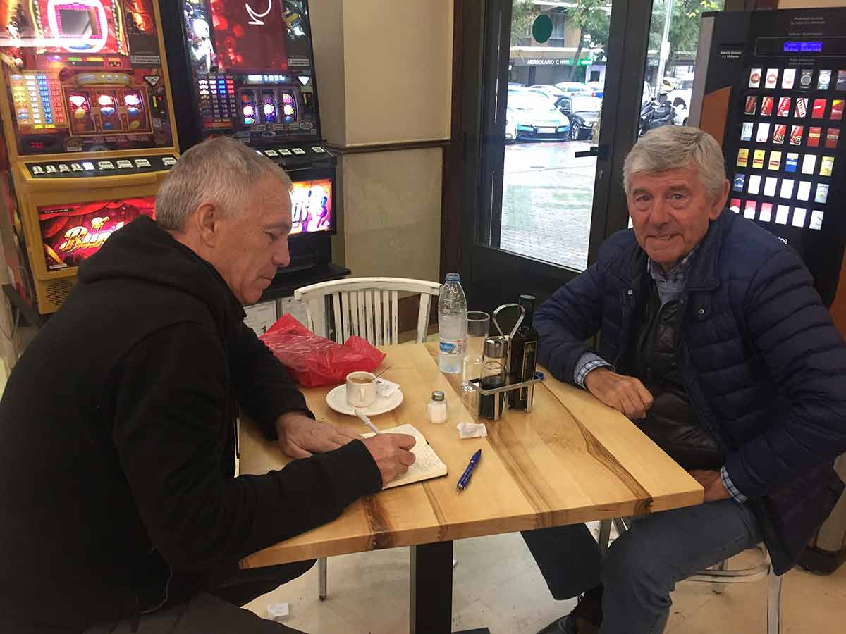 En otra más reciente imagen, el firmante de esta pieza posa en conversación con Jesús Mari Landa, el delantero vasco (de Zarautz) y del Betis. Landa fue el autor de los dos tantos béticos que eliminaron de la Copa de 1966 al Real Madrid flamante 'hexacampeón' de Europa', la trepidante, inolvidable cita del 15 de mayo de 1966, en Chamartín. Y vamos con el último partido de Ferenc Puskás con el Real Madrid, no sin señalar que aquel Betis 'jubiló' oficialmente de los terrenos de juego no sólo al 'Coronel Galopante', sino también a (don) Alfredo Di Stéfano, quien se despidió de la competición con la eliminación de su entonces equipo, el RCD Español, ante ese mismo Betis en cuartos de final.