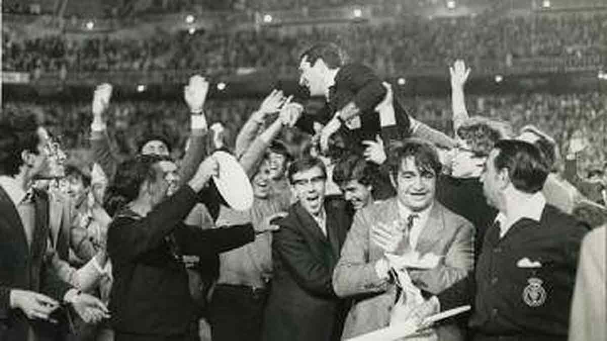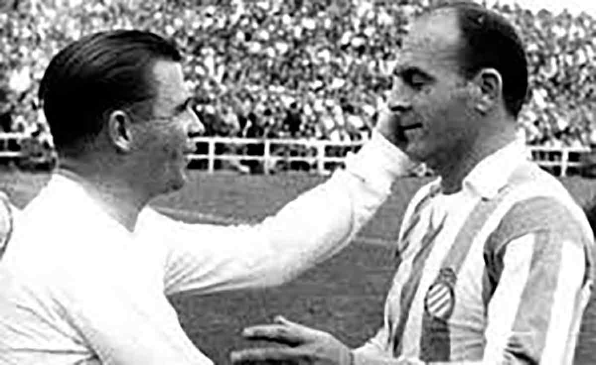 Con el Betis —insistimos, recién descendido en un drama agónico en Málaga— en octavos de final, aparece un RCD Español (con 'ñ') con nombres tan ilustres como el meta Carmelo Cedrún, Rodilla, José María... y nada menos que Alfredo Di Stéfano, como a dos meses de cumplir 40 años en aquellos días y apurando las últimas gotas de su inmensa esencia futbolística.