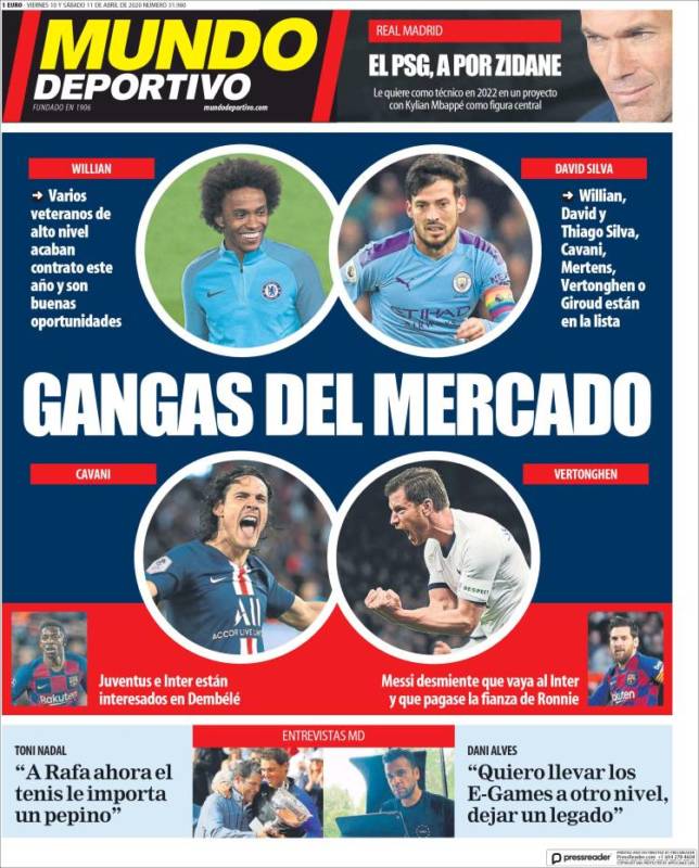 El caso es que ambas portadas valen para hoy y para mañana, como la misa del sábado por la tarde según le dice siempre a esta humilde portanalista su sobrino cura, autor por lo demás de la célebre frase “En el cielo todos seremos del Madrid”, que también puede ilustrar divinamente estas fechas de Semana Santa. Son fechas que para los cristianos se suponen de recogimiento, y vive Dios que este año no va a estar fácil abstenerse de cumplir con ese precepto. Este año la policía, que suele ser laica, te detendrá o te pondrá una multa si no observas dicho recogimiento. Todos en casa, aunque esta vez no tenga mérito porque es lo que hacen todos. Todos en casa, a rezar o a leer Mundo Deportivo, que para eso hoy hay dos, por si os quedabais con ganas de más.