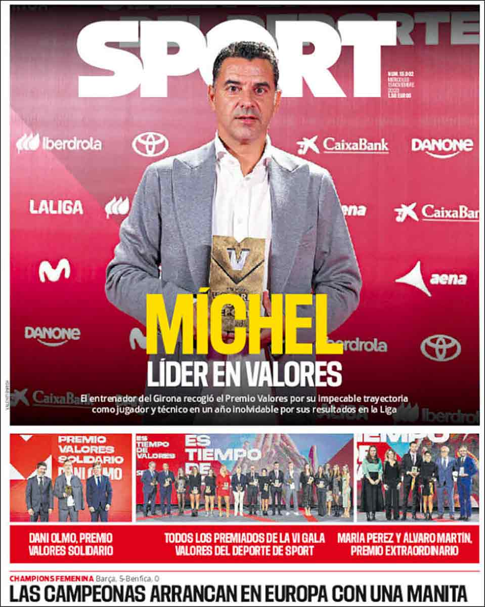 Y finalizamos con la prensa cataculé, que un día más está a sus cositas. Sport ha organizado una gala en la que ha nombrado a Míchel “líder en valores”. Ya era hora de que aplacaran su sesgo culé para premiar por sus merecimientos objetivos al gran José Miguel González Martín del Campo.