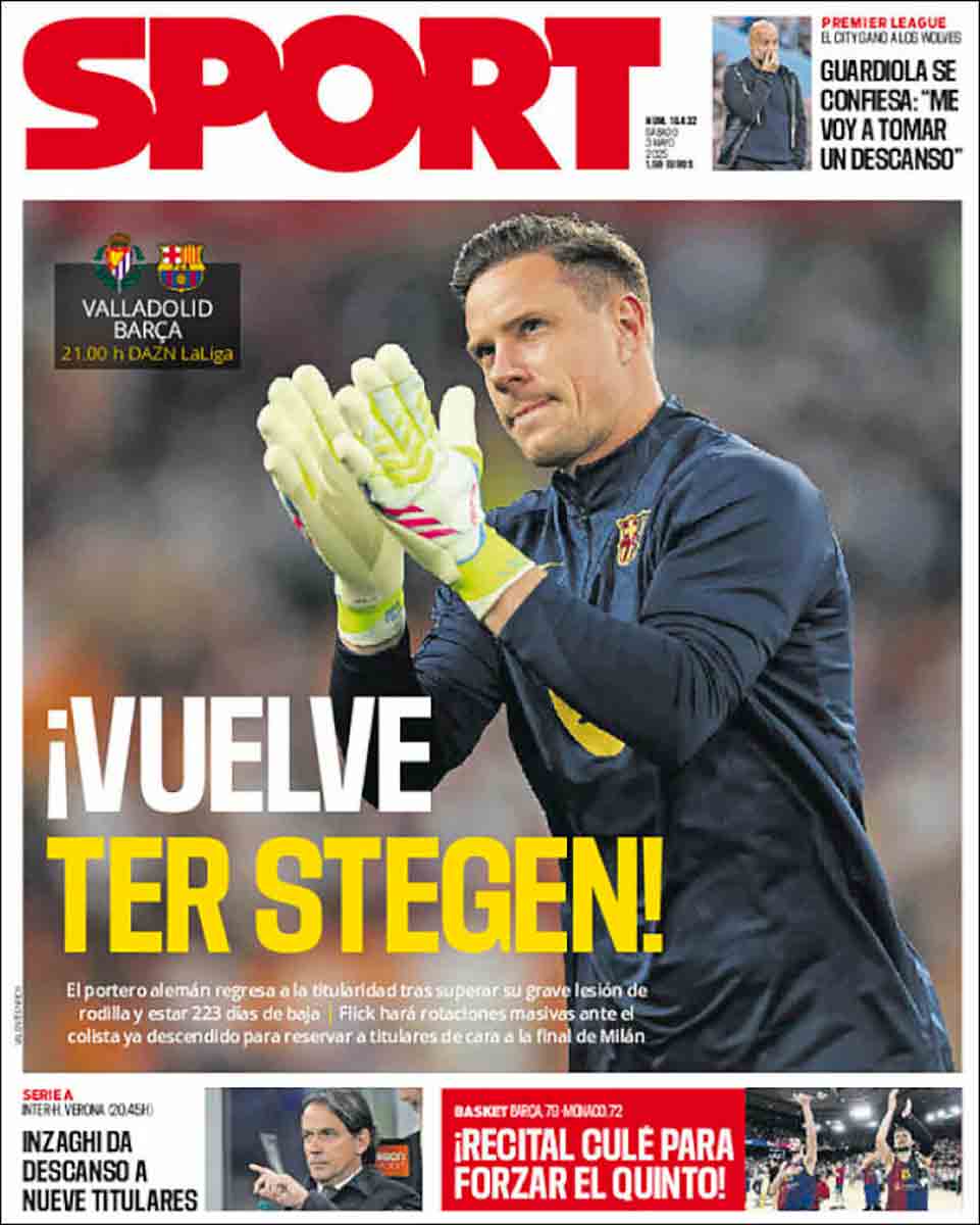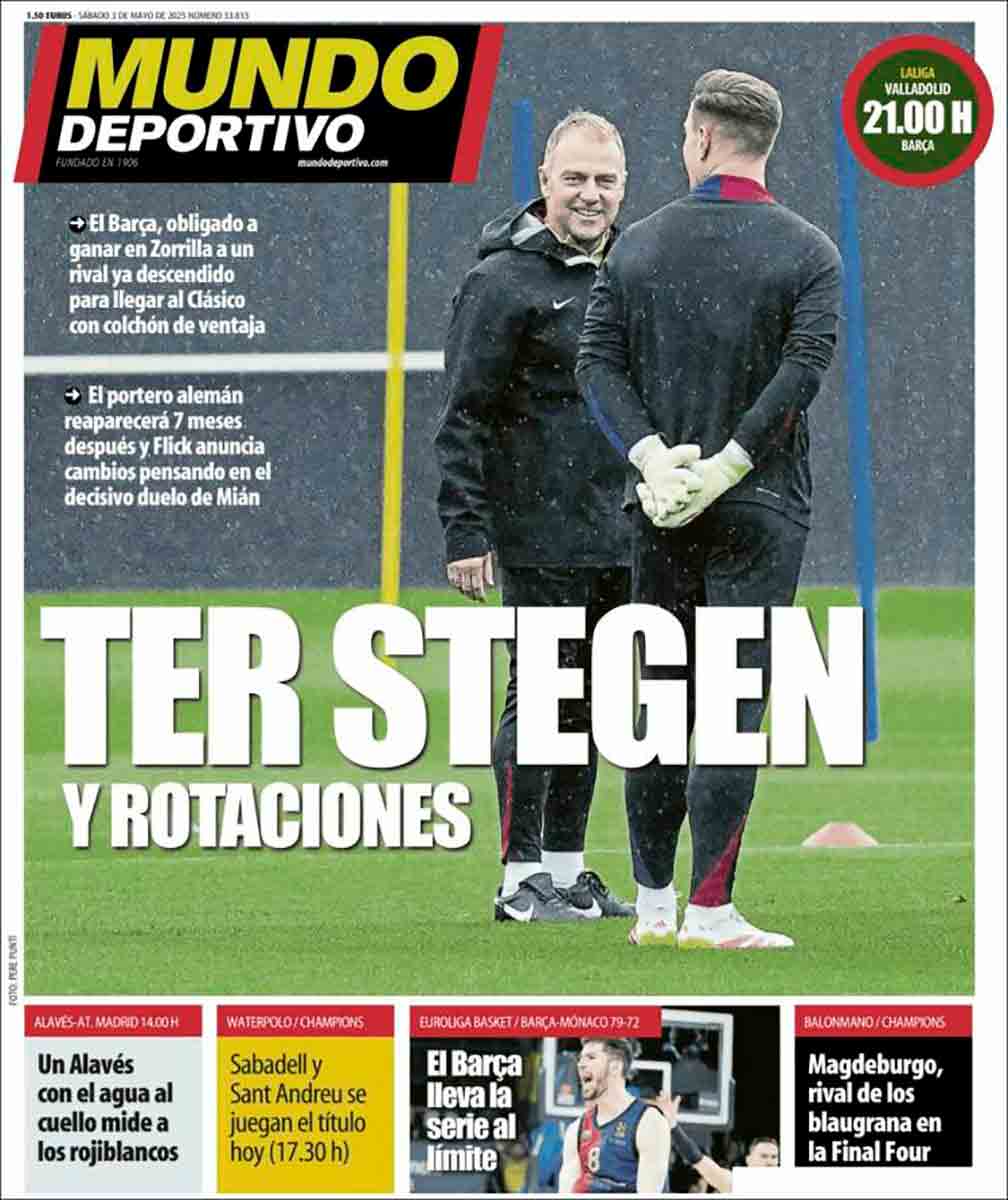 Os dejamos con las portadas de la prensa cataculé, que se centran en la vuelta de Ter Stegen. Le deseamos que haya recuperado su rodilla tan bien como la cabellera. Será una gran señal.