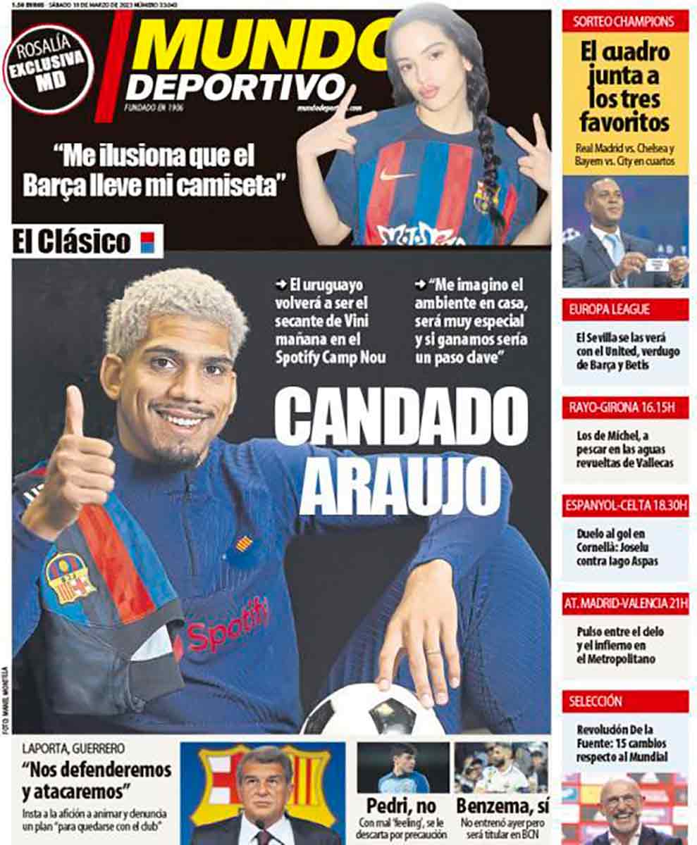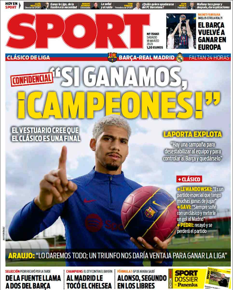 Sport abre con un titular “confidencial” tremendo, cambiará el mundo, lo nunca visto: “Si ganamos, ¡campeones!”. Son las palabras destacadas de Araújo que el propio Araújo nunca dijo, si nos atenemos al entrecomillado del faldón: “Lo daremos todo; un triunfo nos daría una ventaja para ganar la liga”.