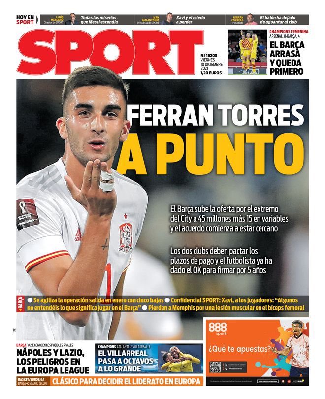 La verdad, bien pensado, y a pesar de nuestra reticencia inicial, ahora no le vemos más que ventajas a esto de ser el fútbol. Te golean año tras año, te humillan una y otra vez, te mandan a la Europa League, se te caen los cascotes del estadio, tu deuda a corto plazo es mastodóntica... pero fichas a Ferrán Torres desde la portada de Sport, que es el mejor sitio desde el cual puedes fichar a la gente. No es descartable, además, que al ser el fútbol de la gente en realidad ya estén fichados. Estas cosas se las preguntáis al Lobo, que a nosotros se nos hace tarde y tenemos que poner por aquí el resto de portadas para vuestra alegría y vuestro gozo. Y recordad, cantando al modo de aquellos artistas ochenteros por África: