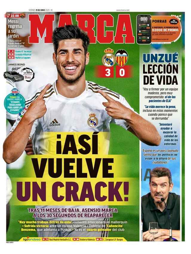 Entiendo hasta cierto punto que la portada se la lleve Asensio por esa vuelta con cara de golazo y su alegría tras el calvario, pero para mí el mejor del partido fue Benzema una vez más, aunque dentro de dos días se le volverá a negar el pan y la sal....