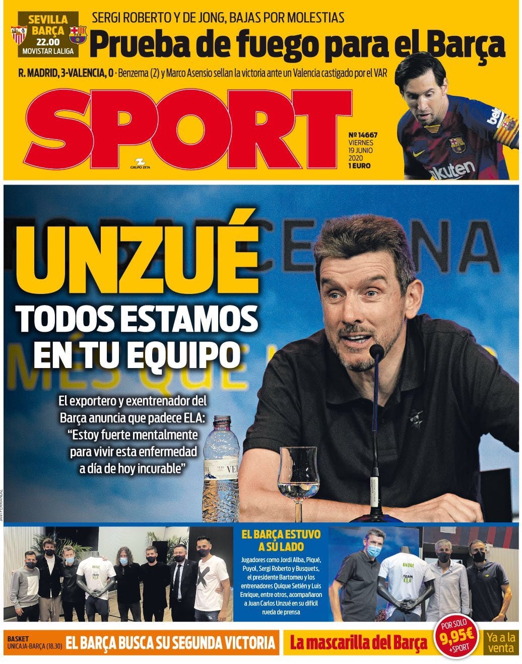 Mundo Deportivo tiene ya la vista fija en el partido que este fin de semana disputa el Barça en Nervión, el mismo que nos tiene de puntillas, a la espera de un eventual pinchazo de los de Setién que permita al Madrid abrazar el liderato.