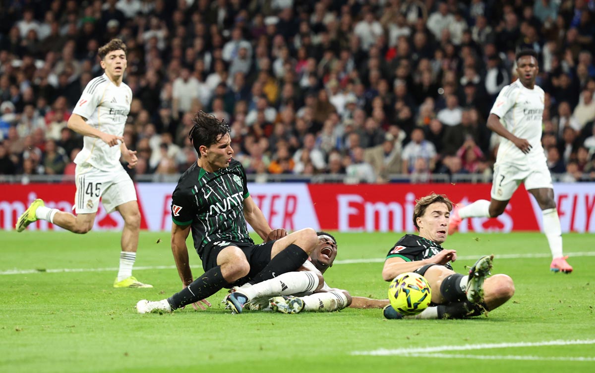 Más tarde, con 1-0 en el marcador, la vida siguió igual ante uno de los tipos de penalti más claros después de la zancadilla por detrás: balón filtrado para Tchouaméni, que arma la pierna para rematar acercándose al área pequeña cuando es trabado por Federico Redondo. El defensa no toca la pelota sino el pie del francés, que no puede completar el movimiento de golpeo. Obstrucción. Penalti.