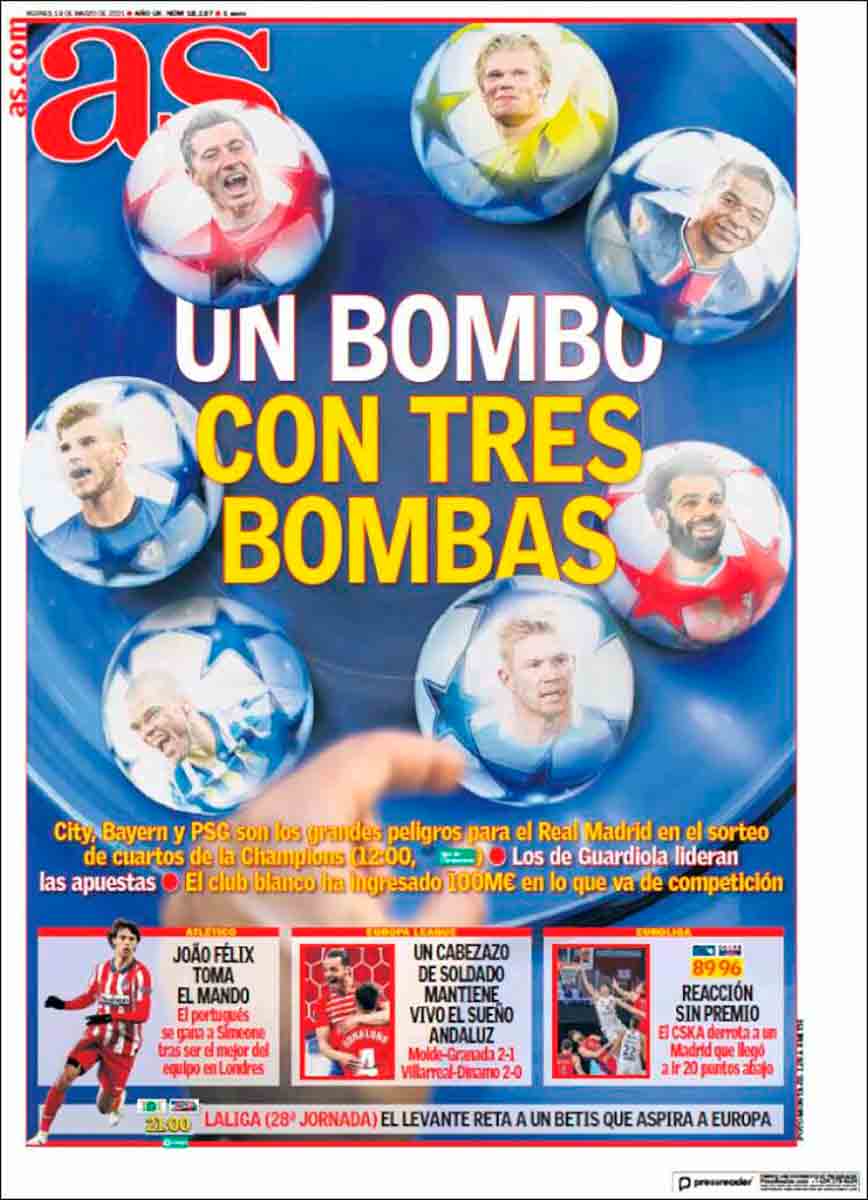Marca y As, contradiciendo la política de ocultación emprendida por Sportivo, cometen la excentricidad de fijarse en lo mismo en que te vas a fijar tú dentro de pocas horas: el sorteo de Champions.